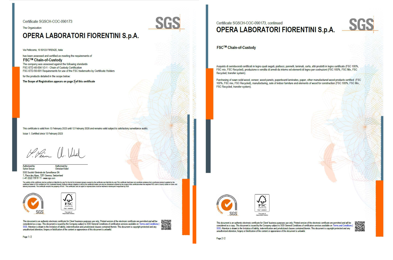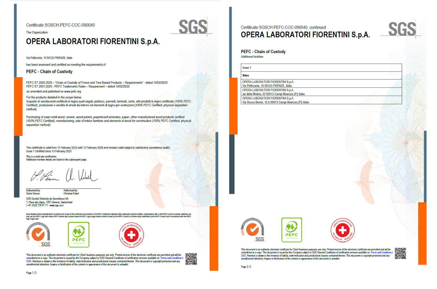 Opera Laboratori has implemented an Integrated Quality and Safety Management System with the aim of continuous improvement, attention to stakeholders, and the guarantee of constant control in the provision of services. The integrated system includes ISO 9001:2015 certification to seek high quality standards, ISO 45001:2018 certification to ensure legislative compliance and attention to health and safety issues in the workplace. The FSC-PEFC certification confirms Opera Laboratori’s respect for environmental, social and economic issues in connection with its artisan wooden productions.